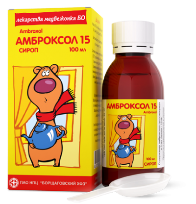 - 5 мл сиропа содержат 15 мг амброксола